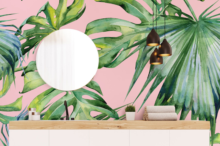 Hanki retroilme kylpyhuoneeseesi rohkean rohkealla Pink Jungle -tapetilla. Se on yksi tämän vuoden suosikki kylpyhuonesuunnitteluideoistamme, ja se tekee kylpyhuoneestasi puheenaihe vieraiden keskuudessa.