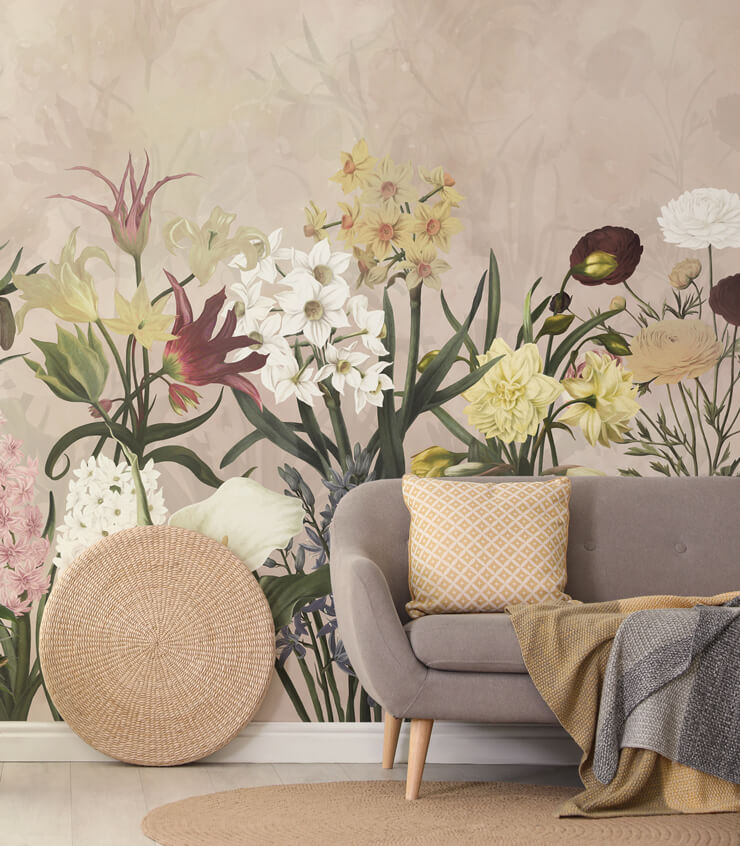 Beige on sisustuksessa varma valinta, ja se on väri, joka ei koskaan mene pois muodista. Siitä huolimatta voit haluta tehdä siitä hieman mielenkiintoisemman. Vaimeat kukkakukat voivat herättää neutraalin tapetin henkiin ja yhdistää sisätilasi uudelleen luontoon. Pidätkö sisä- ja ulkoilmaelämästä? Tämä kasvitieteellinen Growing Spring Flowers -maalaustapetti on täydellinen tapetti keittiöön, ruokailu- tai oleskelutilaan, josta on näkymä puutarhaan.