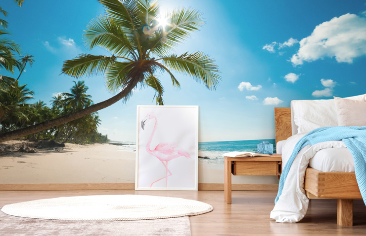 Sinun ei tarvitse pakata tai tulostaa maihinnousukorttia. Tämän Trooppinen ranta -seinämaalauksen avulla saat kaiken tarvitsemasi ajan auringonottoon - ilman auringonpolttamia. Muunna makuuhuoneesi pieneksi palaksi paratiisia ja anna keinuvien palmujen ja sinisen taivaan viedä sinut lämpimämpiin maisemiin ja onnellisempiin päiviin.