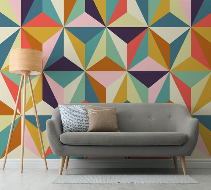 Käytä rohkeasti isokuvioisia tapetteja, kuten tätä Diamonds Geometric -seinämaalausta. Tuleeko sinulle mieleen 70-luvun diskodivojen vuodet vai 1950-luvun sodanjälkeinen värikäs design? Totta puhuen retro on ehdottomasti siistiä.