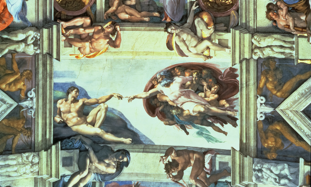 taidetaustakuvamaalaus nimeltä Michelangelon Aadamin luominen makuuhuoneisiin ja kattoihin