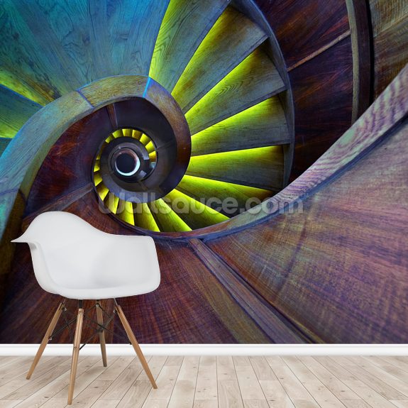 Tuntuu siltä, että olet astunut Wonderlandiin tällä silmiinpistävän pyörteisen portaiden abstraktin taustakuvan avulla. Räätälöity sopimaan seinään täydellisesti.