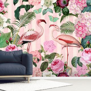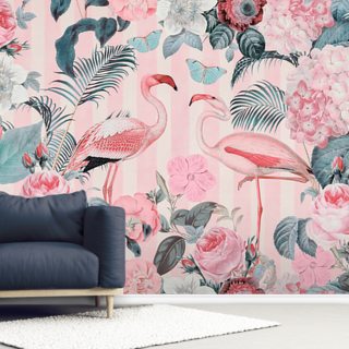 Tuoromanttinen tunnelma makuuhuoneeseesi tällä lintuhäkki-taustakuvalla, jossa on kauniita vaaleanpunaisia kukkia. Tehty mittoihisi, tämä kaunis taustakuva seinämaalaus antaa buduaarillesi upeimman ominaisuusseinän.