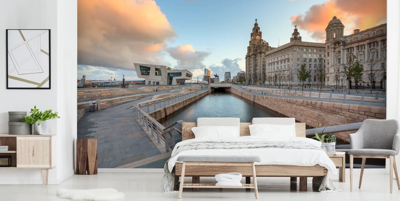 Muuta kotisi tällä tehdyllä Liverpool Liver Building Sunrise -seinämaalauksella.