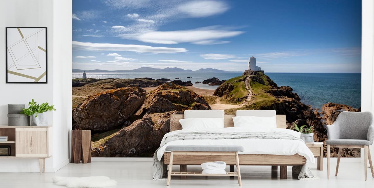 Upea Llanddwyn Islandin majakan seinämaalaus Wallsaucesta. Tämä korkealaatuinen taustakuva on mittatilaustyönä mittojen mukaan.