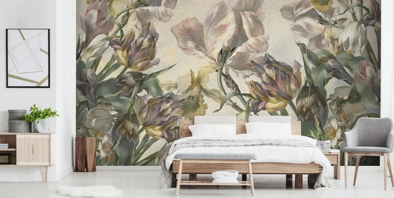 Siirry ajassa taaksepäin tällä upealla Antique Tulppaanit -seinämaalauksella Marina Stupakova -kokoelmastamme. Täydellinen antiikkitapetti romanttiseen makuuhuoneeseen.