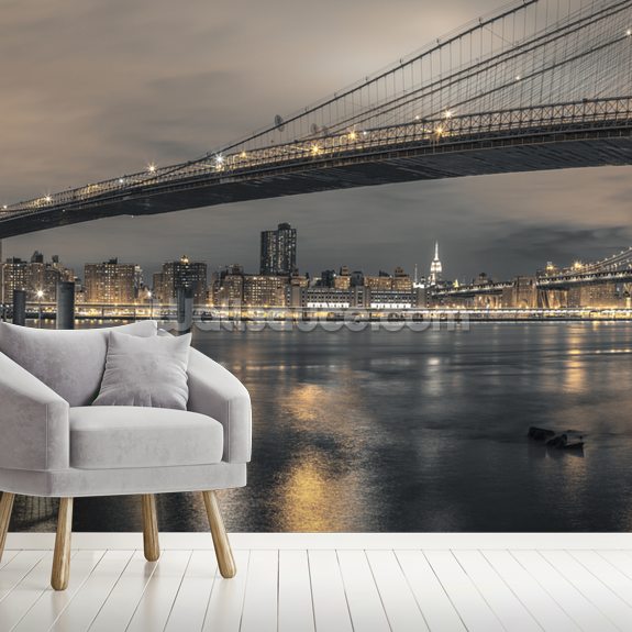 Brooklyn Bridge pitkä laukaus - New Yorkin seinämaalaus taustakuva