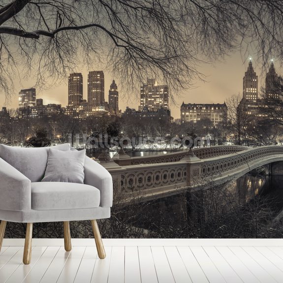 Upea keskuspuisto Manhattan Moody Lights -seinämaalauksella. Räätälöity sopimaan seinään täydellisesti.