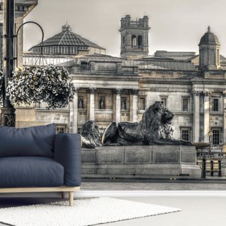 Asetatämä Lontoon taustakuva oleskelutilan seinälle ja valitse sinisävyiset huonetarvikkeet heijastamaan hehkuvien rakennusten sävyjä.