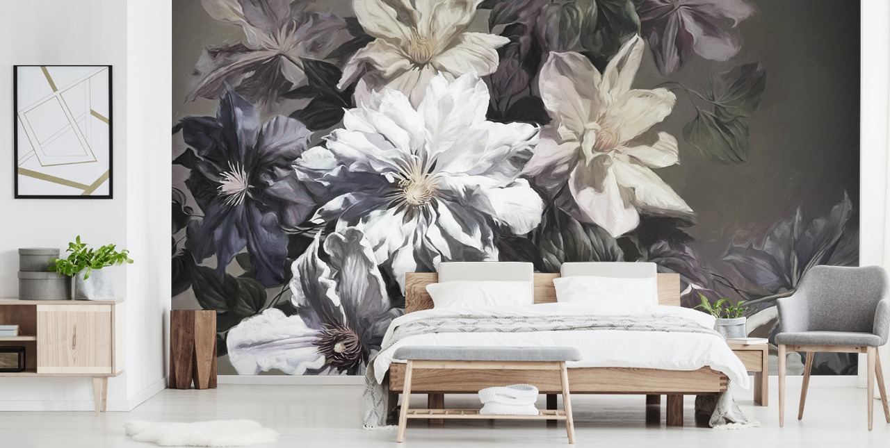 Kun olet valmis ostamaan koko Clematis-seinämaalauksen, anna vain mittasi, valitse haluamasi materiaali, ja tiimimme huolehtii lopusta.