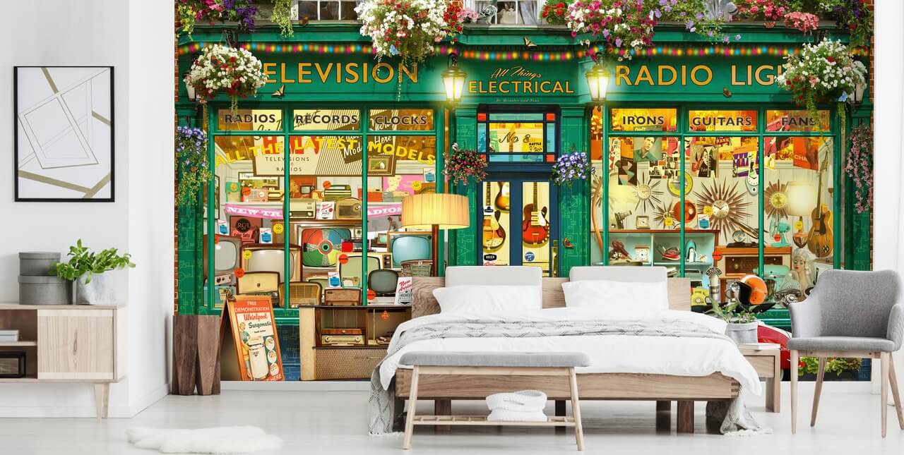 Luoupea julkisivu seinä tällä fantastisella Electric Shop -taustakuvalla. Täydellinen tuo tilaa elämään, tämä kauppa julkisivun taustakuva näyttää täydelliseltä missä tahansa huoneessa ja missä tahansa tilassa.