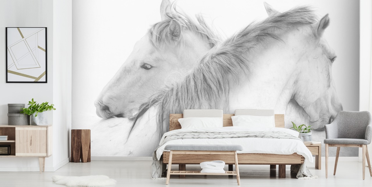 Tuo hevosten kauneus kotiisi tällä upealla Horses in White -seinämaalauksella, jonka toimittaa 1X Photography.
