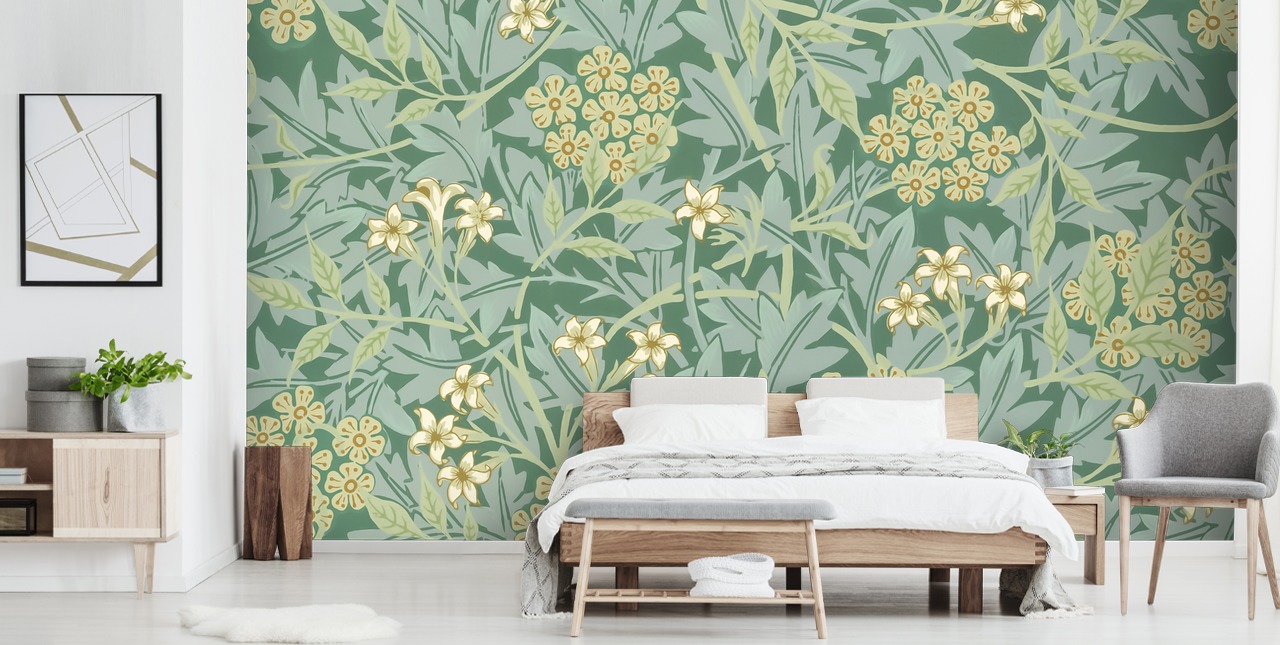 Vihreäja virkistävä, tämä kaunis Jasmine-taustakuva on yksi suosituimmista William Morris -taustakuvista. Sekoitus salvia vihreitä ja minttuisia tuoreita sävyjä, tämä kaunis kasvitieteellinen taustakuva heijastaa kaunista ulkona, joten se on täysin rauhoittava muotoilu kotiin.