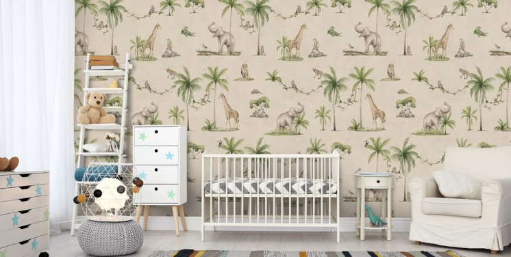 beige muokattava lastentarhan seinämaalaus nimeltä Playful Woods - Vintage Beige by Kikki Belle