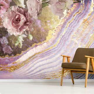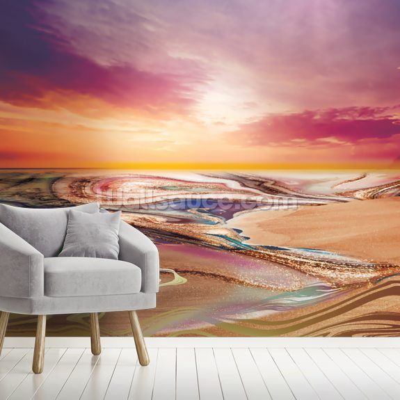 Upea lila Golden Ombre Seascape -seinämaalaus Wallsaucesta. Tämä korkealaatuinen taustakuva on mittatilaustyönä mittojen mukaan.