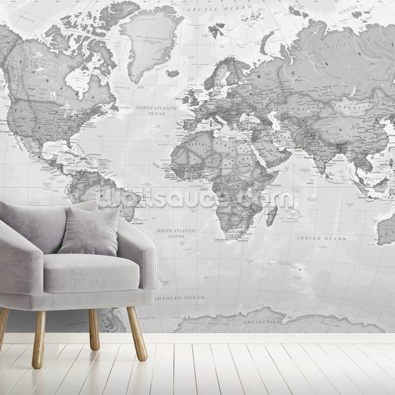 Asenna tämä mitattavaksi tehty World Political Grey -kartan taustakuvamaalaus kotiisi tai toimistoon. Helppo tilata ja helppo asentaa.