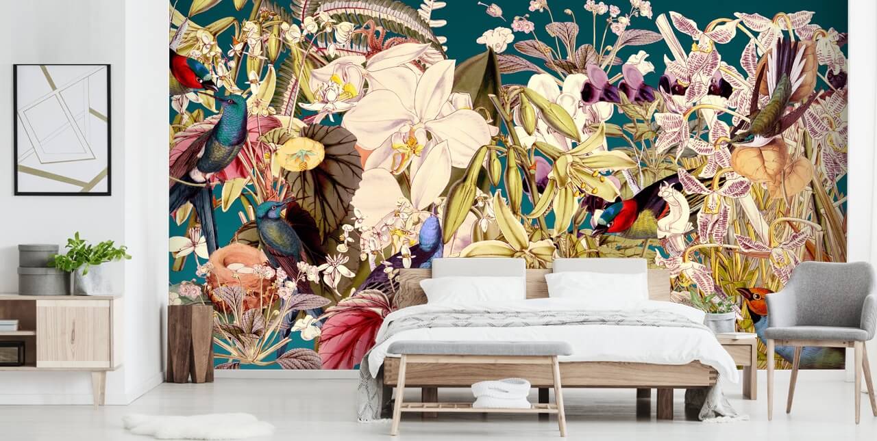 Lisäätrooppista loistoa seinillesi tällä upealla Wild Birdlife -seinämaalauksella Wallsauce.com-sivustolta. Ihanteellinen trooppinen seinä eksoottiseen sisustussuunnitteluun.