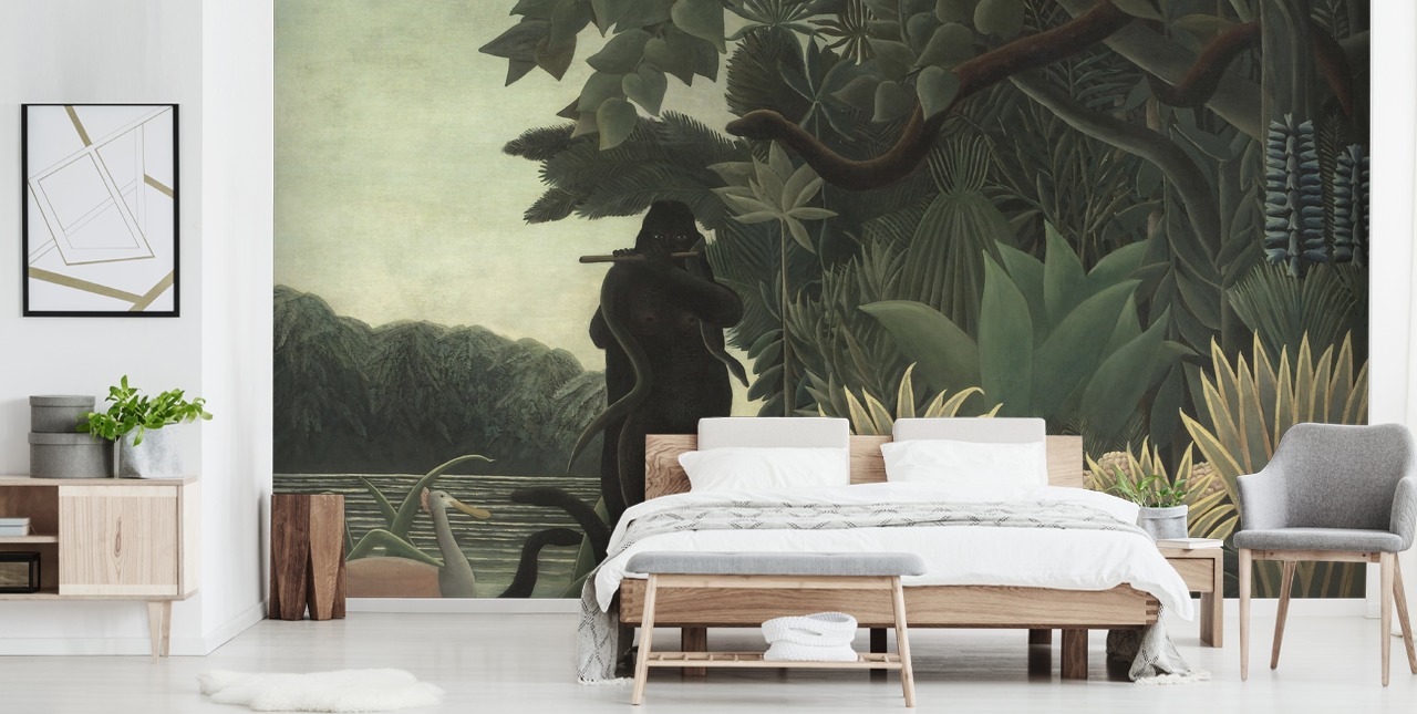 Juhli klassista taidetta Henri Rousseaun mittatilaustyönä valmistetulla The Snake Charmer -taustakuvamaalauksellamme.