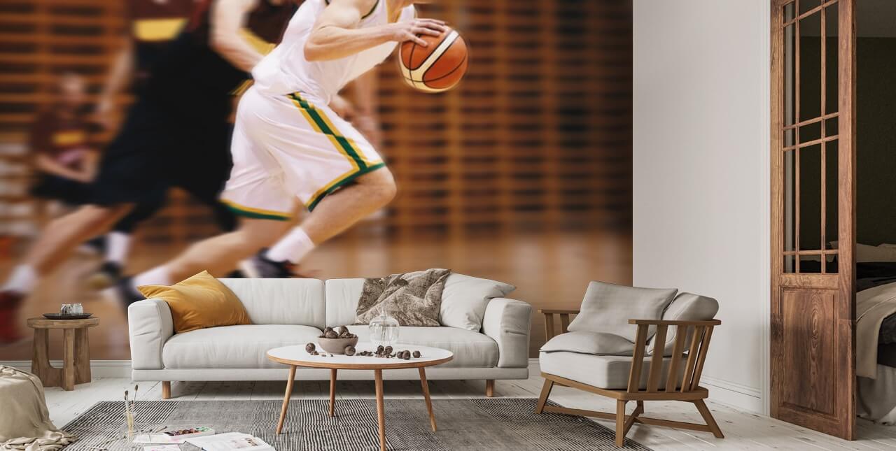 Bring the thrill into your home or workspace with our basketball dribbling wallpaper wall mural.