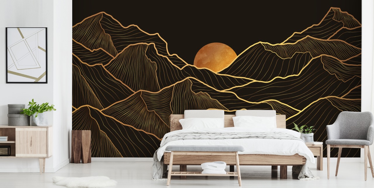 Muutakotisi tällä tehdyllä mitata Dark Mountain Peaks -taustakuvan seinämaalaus. Tummien mustien sävyjen kanssa, jotka ovat vastakkaisia lämpimiä, kultaisia sävyjä vastaan, tämä tyylikäs vuoristotaustakuva lisää draamaa mihin tahansa huoneeseen, johon se on asennettu.