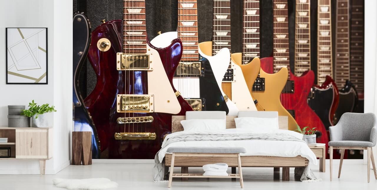 Upea värikäs sähkökitarat seinämaalaus Wallsauce. Tämä korkealaatuinen taustakuva on mittatilaustyönä mittojen mukaan.