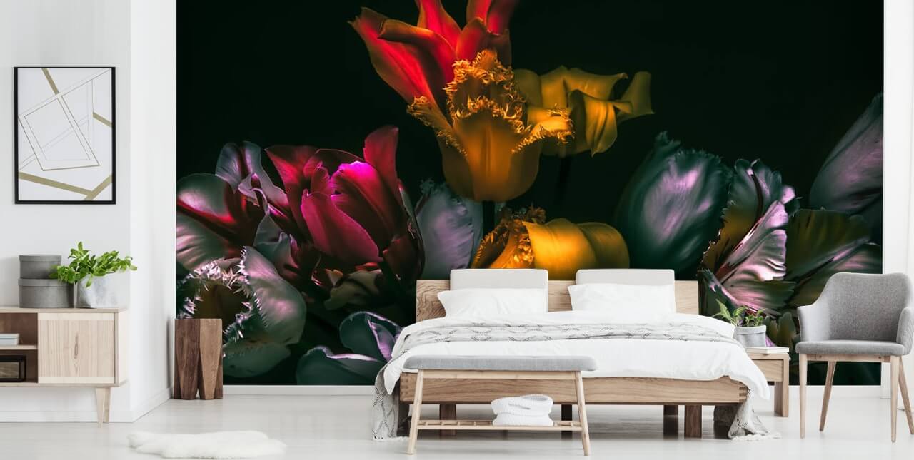 Jos rakastat tätä tummaa kukka-taustakuvamaalausta, osta se verkossa tänään. Täytä online-tilauslomake ja määritä seinän mitat, rajaa haluamasi kuvan osa ja kerro meille valitsemasi taustakuva.