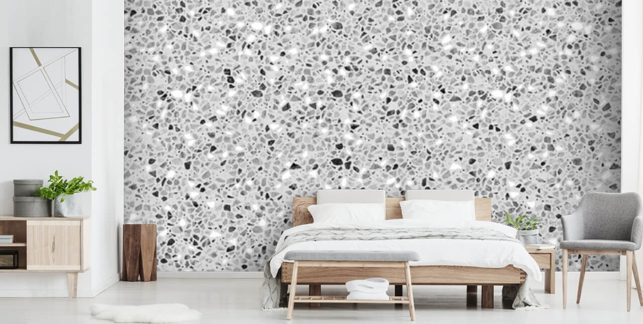 Haluatkopäivittää kotisi sisustuksen? Valitse sitten tämä mittatilaustyönä valmistettu Grey Speckles -seinämaalaus terrazzo-taustakuvamallistostamme. Yhdistä tämä tyylikäs harmaa taustakuva mustavalkoisiin, valkoisiin ja harmaisiin huonetarvikkeisiin. Se on niin yksinkertaista.