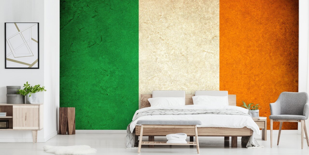 Tuoripaus Irlantia kotiisi tämän avulla, joka on tehty mitata Irlannin lipun taustakuvan seinämaalaus Wallsauce.comista. Täydellinen miehen luolaan, kotitoimistoon tai baarialueelle!