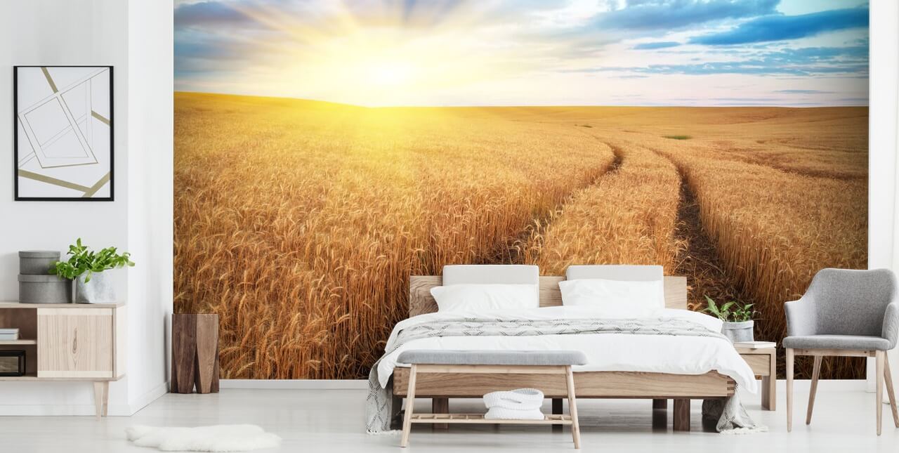 Asenna tämä kaunis Meadow of Wheat -taustakuvan seinämaalaus. Mittatilaustyönä sopimaan seinään.
