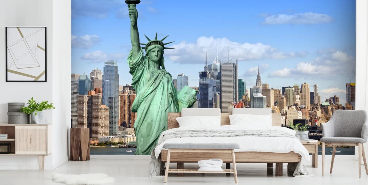 Upea New Yorkin kaupunkikuvan seinämaalaus Wallsaucesta. Tämä korkealaatuinen taustakuva on mittatilaustyönä mittojen mukaan.