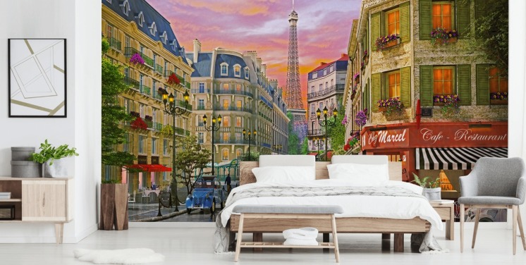 Tuo rakkauden kaupungin romantiikka kotiisi tyylikkäällä Pariisin taustakuvamaalauksella.