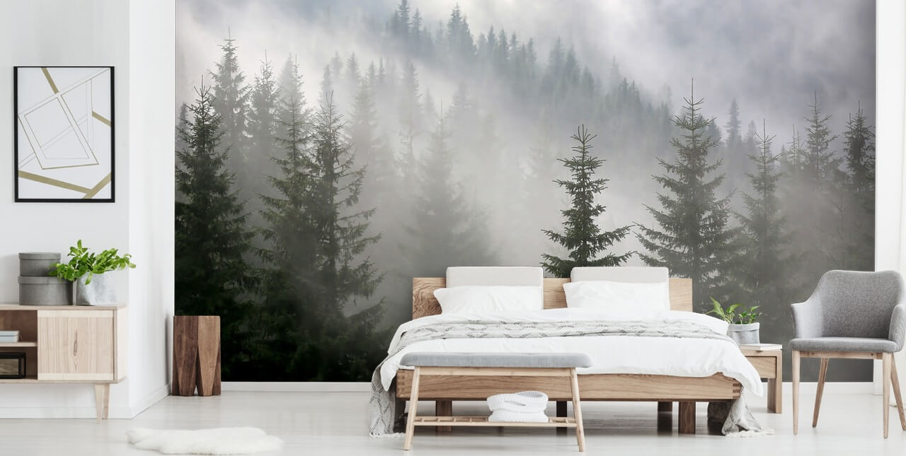 Nauti tästä Pine Forest in Mist -seinämaalauksesta kotona, työpaikalla tai missä tahansa! Niin monipuolinen ja mittatilaustyönä tehty, mitä muuta voisit haluta?