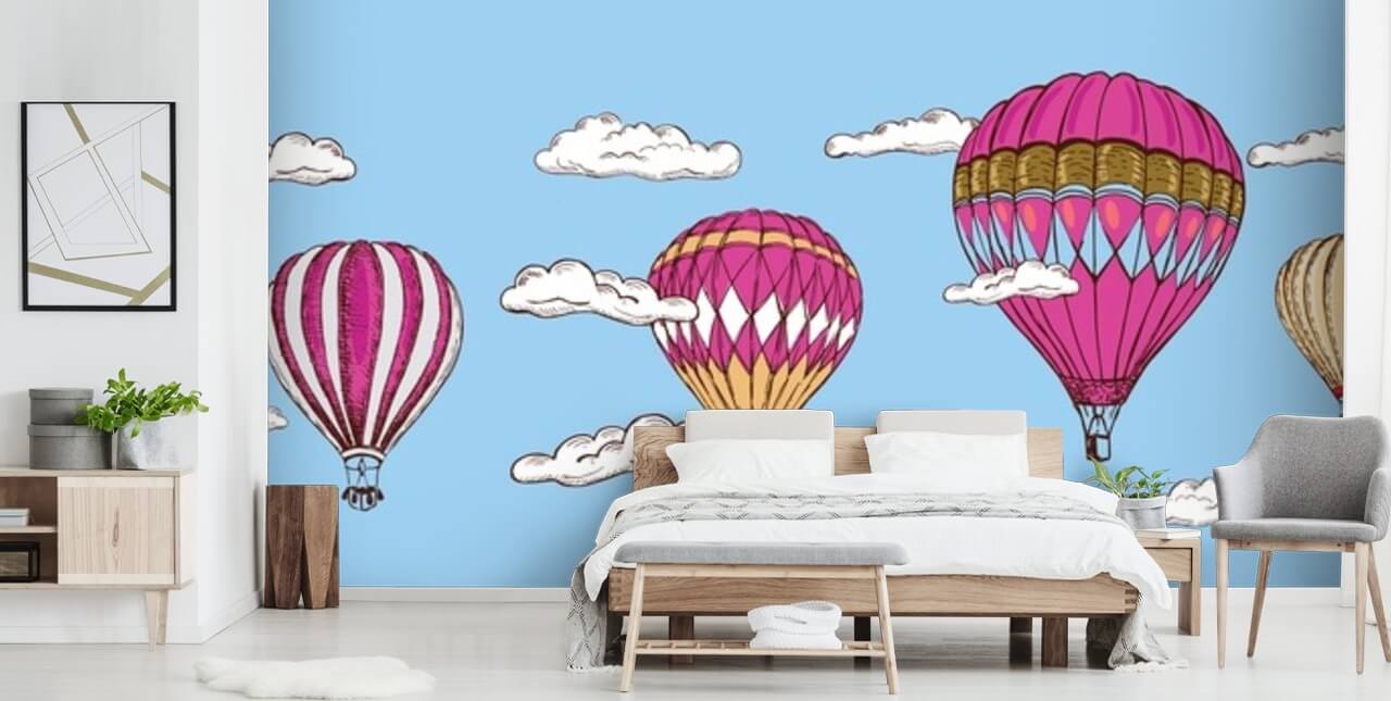 Nauti tästä upeasta Pink Hot Air Ilmapallojen taustakuvasta! Mittatilaustyönä sopimaan seinään.