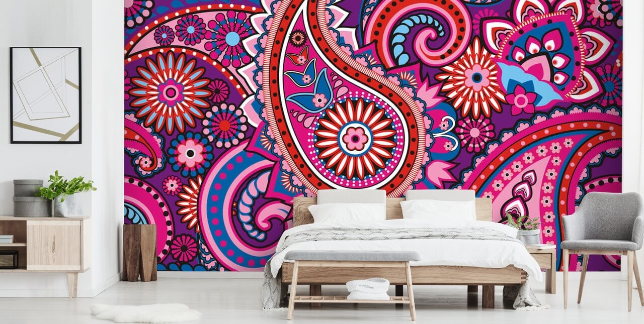 Joshaluat hippi ominaisuusseinän, niin miksi et menisi tähän upeaan psykedeeliseen Paisley-taustakuvaan? Upea vaaleanpunainen taustakuva tyttömäiselle makuuhuoneelle tai silmiinpistävä lausunto loungessa, tämä groovy-taustakuva näyttää hyvältä monenlaisissa huoneissa.