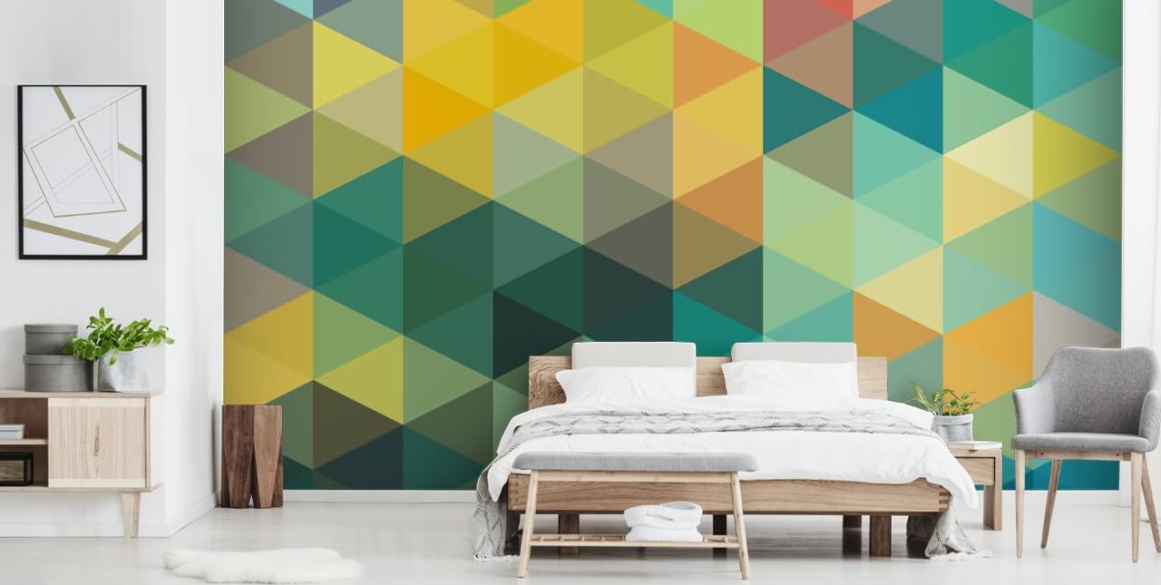 Hankitämä värikäs geometrinen taustakuva tänään kertomalla meille seinän mitat ja taustakuvan valinta. Tarjoamme klassinen tai premium liitä seinään tai kuvioitu kuori ja kiinni.