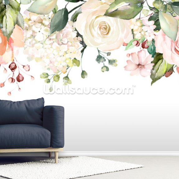 Kuvittele tämä upea kukkatapetti ruokasalissasi, joka on asennettu seinää pitkin samaan suuntaan kuin ruokapöydän pituus. Maalaa ympäröivät seinät valkoisella maalilla ja saat kokoelman valkoista tai luonnonpuukoristusta. Pidä ripauksia salvianvihreitä ja vaaleanpunaisia huonetarvikkeita hajallaan ympäri huonetta.
