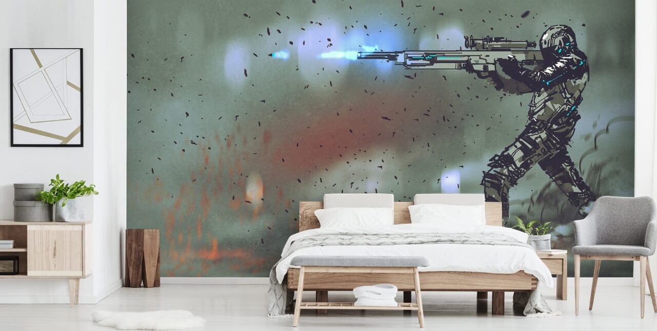 Haluatko viileän ominaisuusseinän? Valitse sitten tämä silmiinpistävä Soldier Kuva taustakuva. Mittatilaustyönä sopimaan seinään.