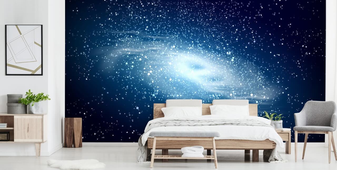 Upea Space Galaxy taustakuva Wallsauce. Tämä korkealaatuinen avaruusseinämaalaus on mittatilaustyönä mittojen mukaan. Helppo tilata ja asentaa.