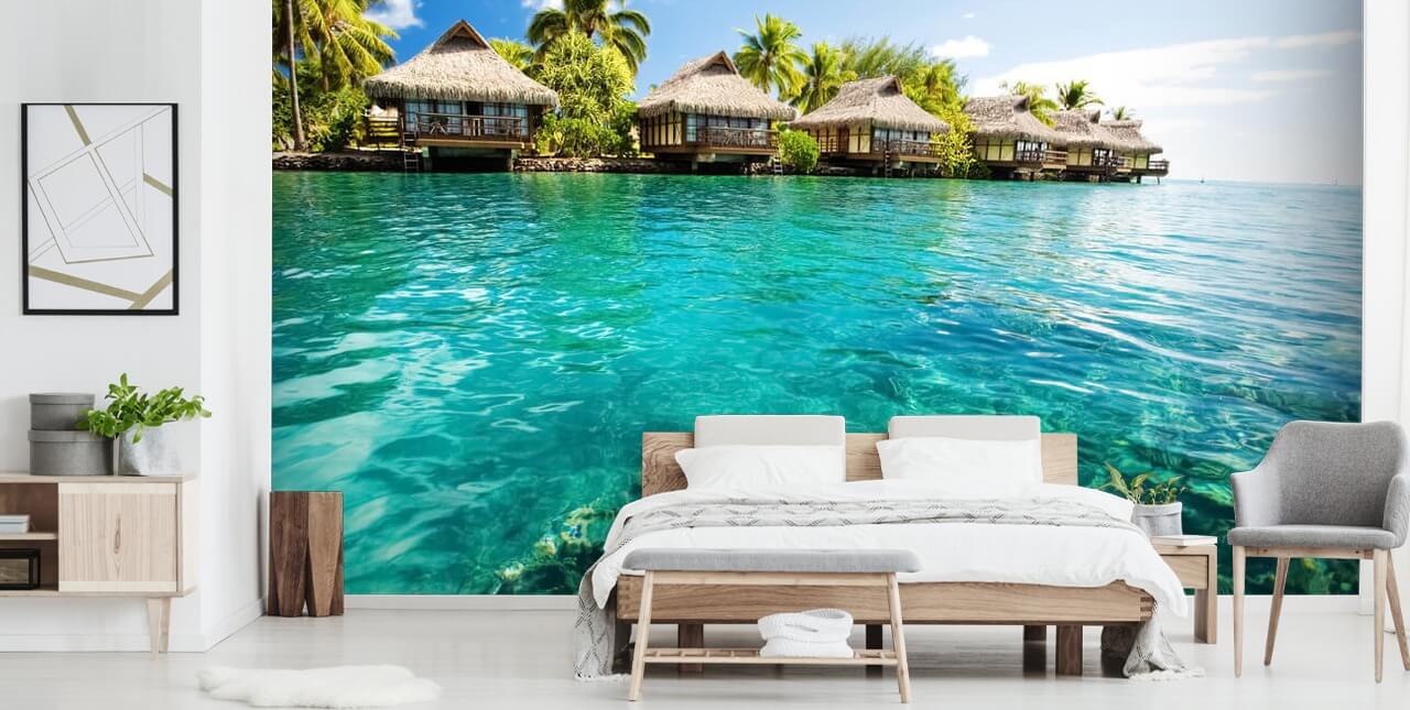 Ole lomalla ympäri vuoden tällä upealla, mittatilaustyönä tehdyllä Tropical Lagoon Heaven -seinämaalauksella.