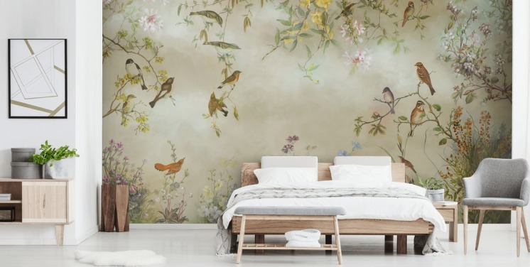 neutraali beige kukka tapetti seinämaalaus