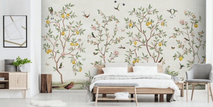 sitruunapuu chinoiserie tapetti seinämaalaus