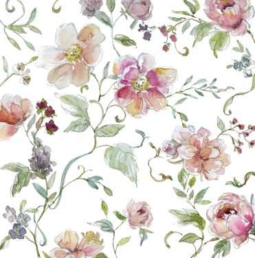 Valkoinen ruusu ja Ranunculus-seinämaalaus