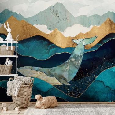 Söpö Sea Life -seinämaalaus valailla sinisellä