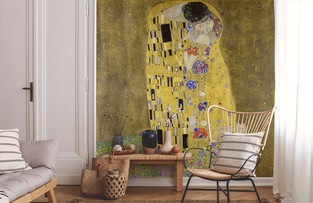 Transform your home or workspace with a stunning custom-made wall mural showcasing the iconic art of Gustav Klimt. His masterpieces, particularly the enchanting 'The Kiss,' are known for their rich patterns and vibrant colours, providing a striking focal point that celebrates beauty and intimacy.