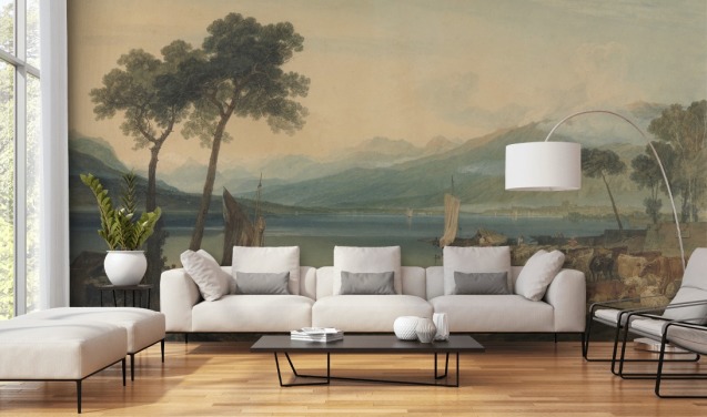 fine art wallpaper mural called Lake Geneva and Mont Blanc by J. M. W. Turner for bedrooms and lounges