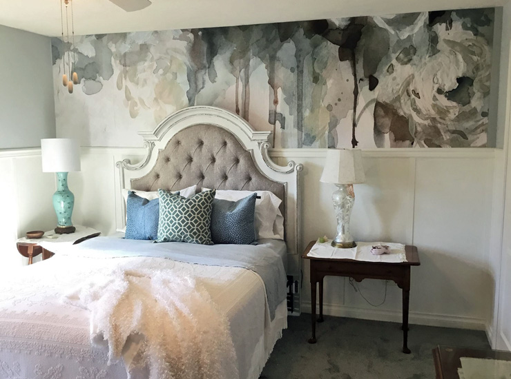 Notre cliente Cheri a transformé sa chambre à coucher en un espace unique et intéressant, tout en respectant la palette de couleurs douces et feutrées. Nous adorons la façon dont cette pièce combine la beauté de l'ancien et du nouveau, en transformant un pan de mur gênant en une superbe œuvre d'art moderne. Le produit fini ? Quelque chose de tout à fait élégant et classique avec une touche contemporaine.