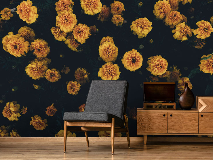 Préparez-vous pour le printemps avec un joli papier peint floral moutarde