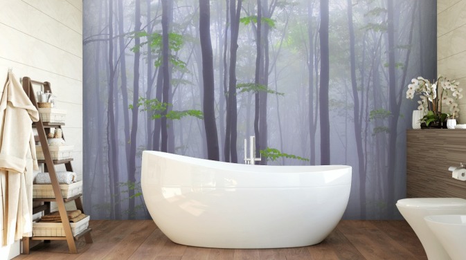 Papier Peint Fresque Forêt Verte Brumeuse