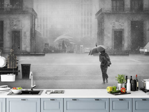 papier peint ville pluvieuse noir et blanc