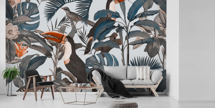 Décoration murale nostalgique de la jungle de cacatoès par Andrea Haase